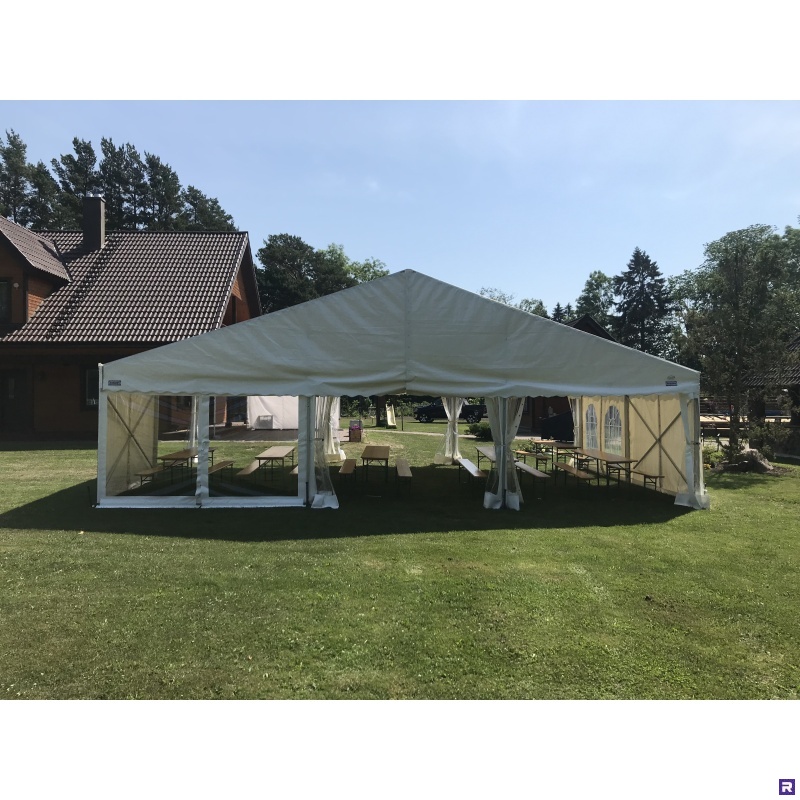 Et ootamatu vihm või tuul ei rikuks plaane ning renditud mööblit, vali sobivas suuruses telk. 10 meetrit laiade telkide kõrgeim tipp on 4,11 meetri kõrgusel. See annab võimaluse paigaldada lae alla nii kangaid kui ka valguskette, lühtreid. Telgi suurust valides arvesta kindlasti sellega, mis on plaanitud telgi alla.