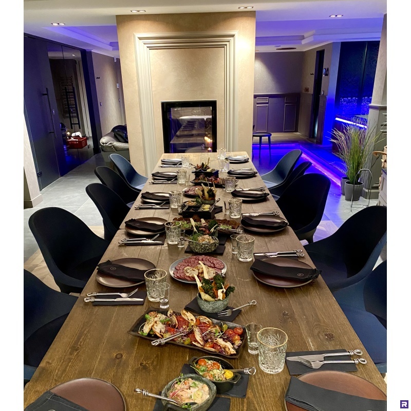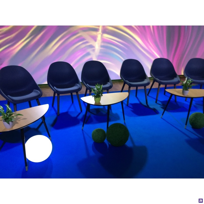 Tumesinised tugitoolid nii lounge alale, esinejatele lavale kui ka õhtusöögile, istumislauade taha.
